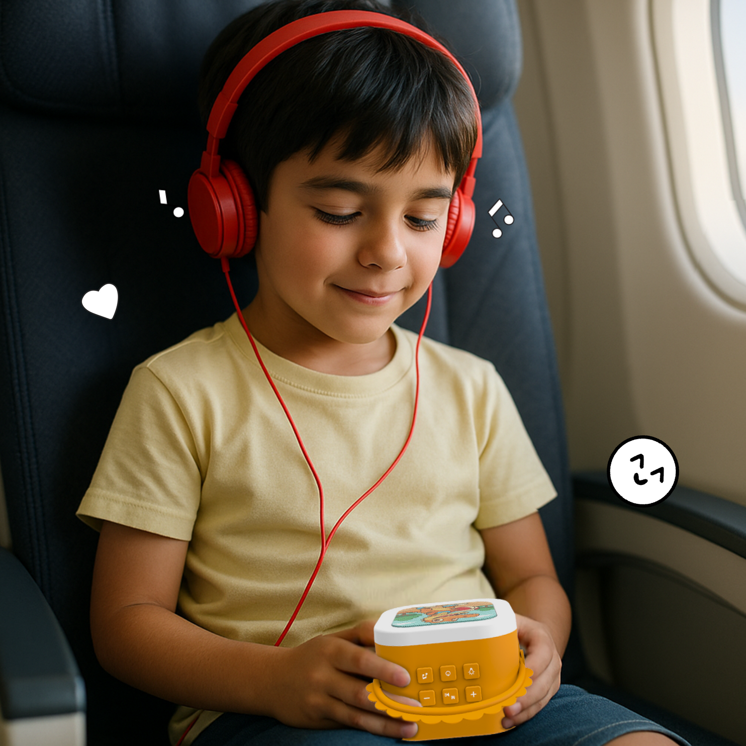 Absolutely! The Storybox Mini is compact, wireless, and works completely offline, making it the perfect travel buddy for road trips, flights, or train rides. Just pick it up and press play, no Wi-Fi or app needed!