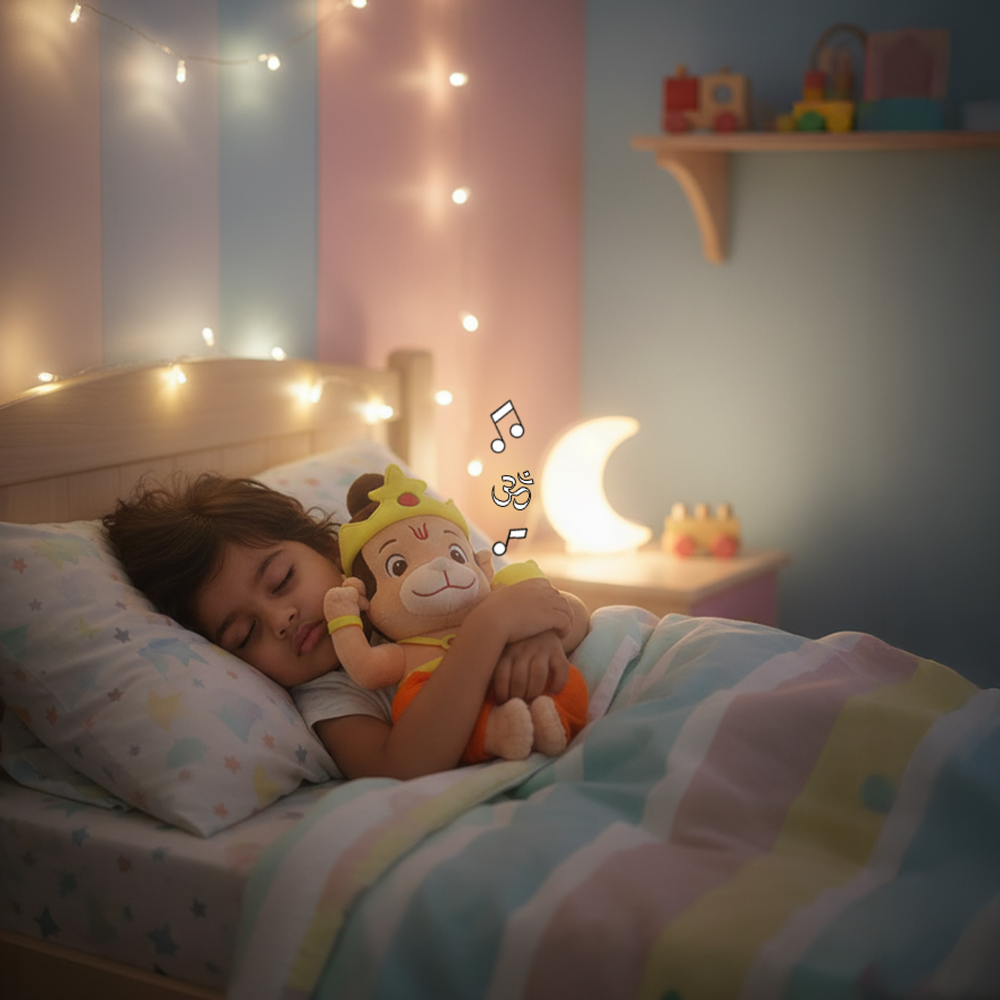 For the littlest ones, our Divine Plush Toys - Krishna, Hanuman, and Ganesha, come with 8+ sacred sounds, including mantras, aartis, chaupais, and bhajans. These gentle, devotional tracks soothe newborns, infants, and toddlers, creating a calming, comforting space while introducing them to India’s rich cultural rhythms from the very beginning.