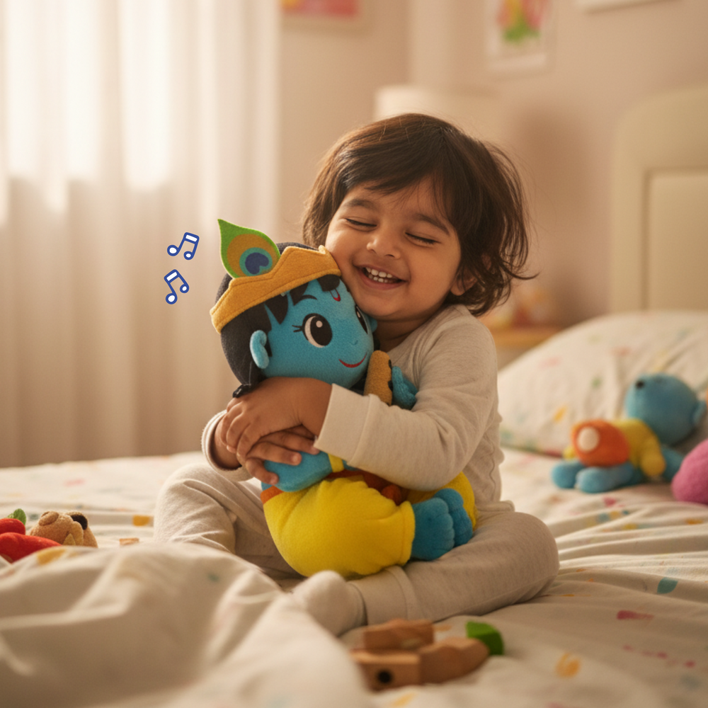 Our Divine Plush Toys are made for even earlier beginnings, they can be used right from the womb, offering newborns, infants, and toddlers soothing mantras, gentle aartis, and soft, huggable comfort that brings calm to their earliest moments.