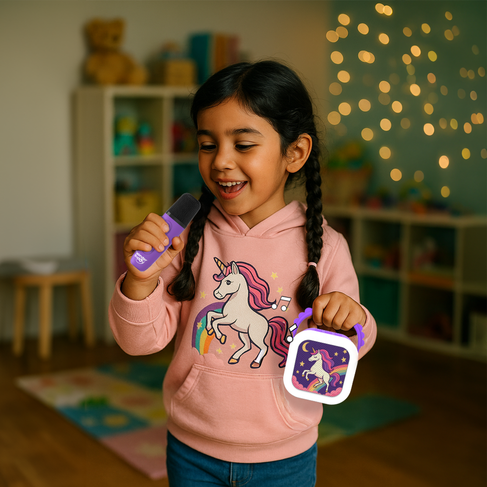 For older kids ages 6–10, the Dino and Unicorn variants come with a mic and 250+ preloaded stories with complex plots, layered characters, and exciting adventures, helping children explore new ideas and boost confidence. The mic lets kids sing, perform, and become fearless little performers, all while enjoying screen-free fun anytime, anywhere.