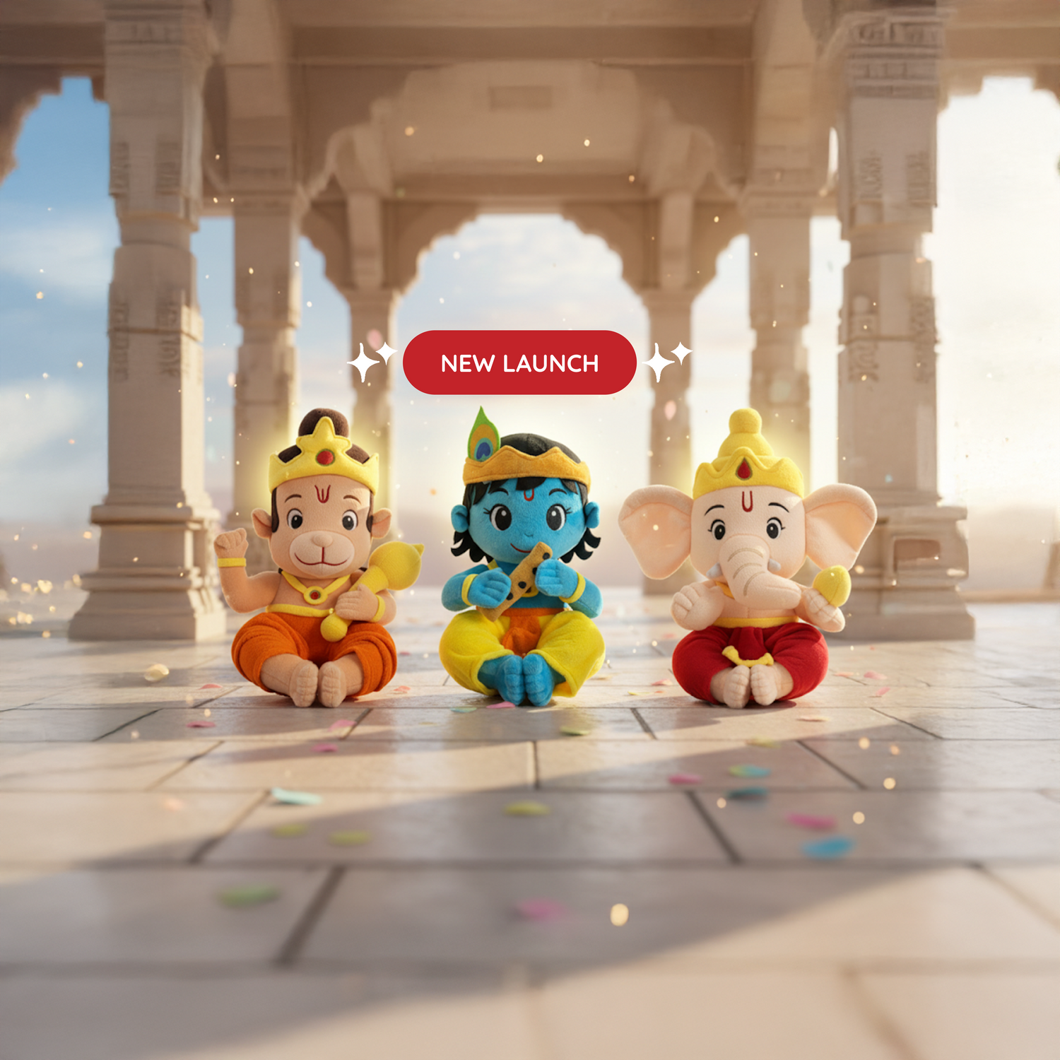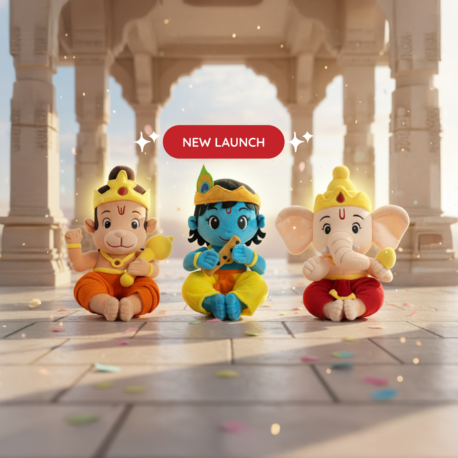 Introduce your child to Indian culture and heritage with soft, huggable plush toys preloaded with mantras & aartis