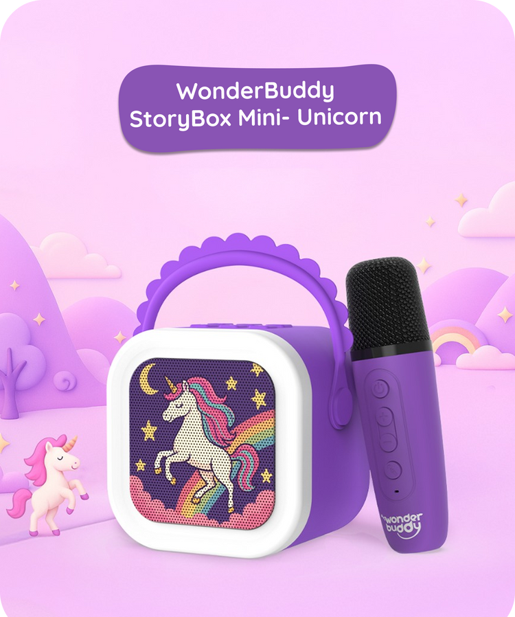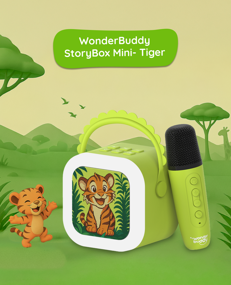 The Storybox Mini comes preloaded with 200+ stories and rhymes, carefully curated by child development experts and teachers to nurture imagination, vocabulary, and emotional growth. The Tiger and Dragon variants (for ages 3–5) feature musical rhymes and early learning tales that make screen-free play both fun and educational. The Unicorn and Dino variants (for ages 6–10) include adventure-filled stories with layered characters and rich plots that spark curiosity and creativity. Every story, song, and rhyme is chosen with purpose to make listening a joyful, meaningful part of every child’s day. Check out our content here.