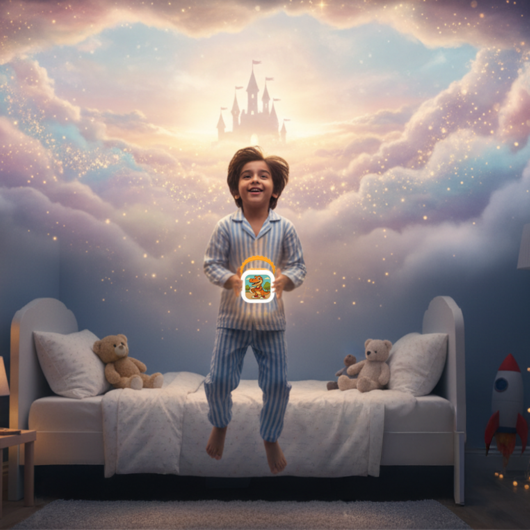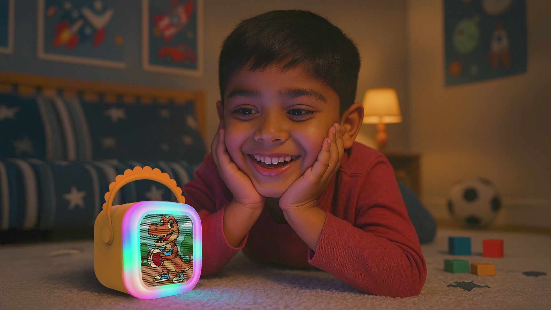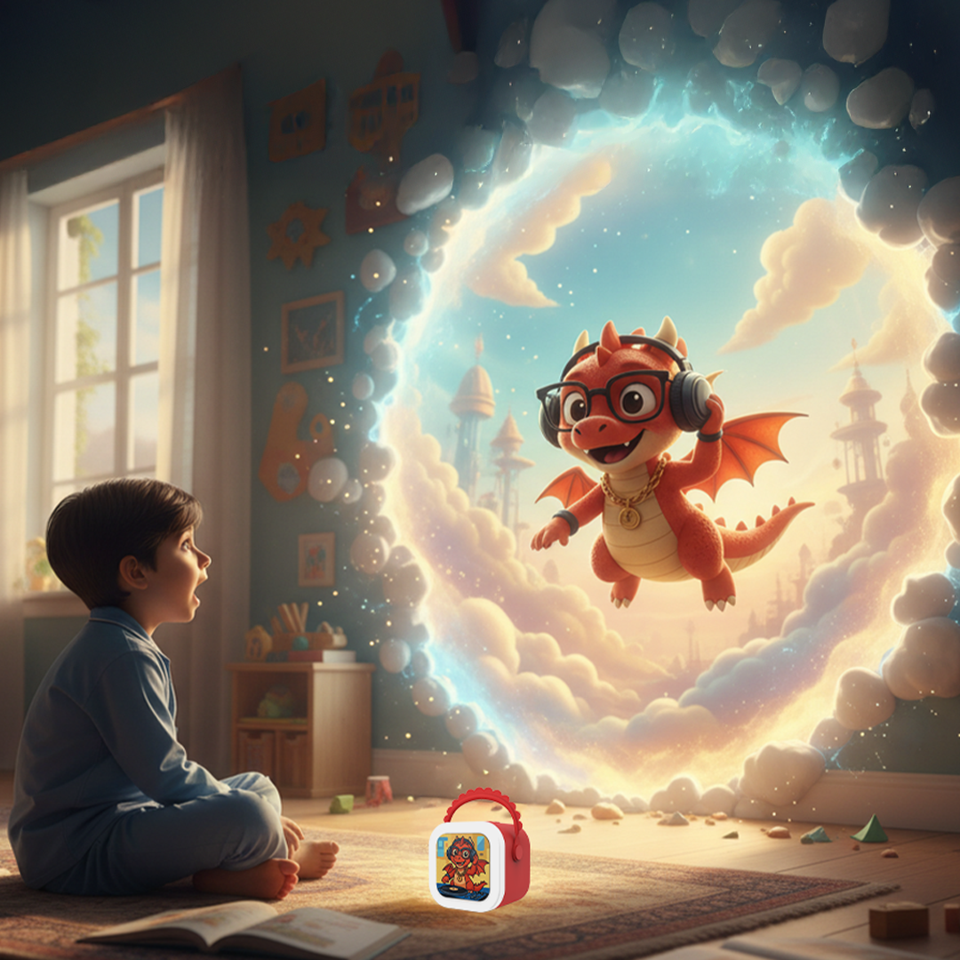 The screen-free audio storyteller that transforms curious kids into confident communicators, creative thinkers, and lifelong learners.