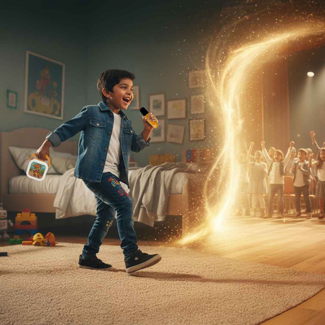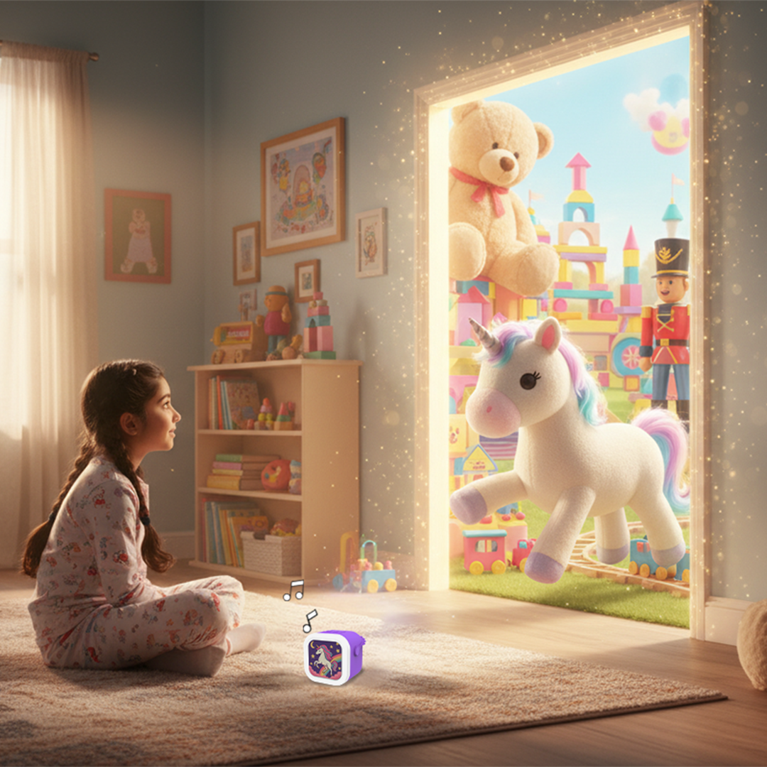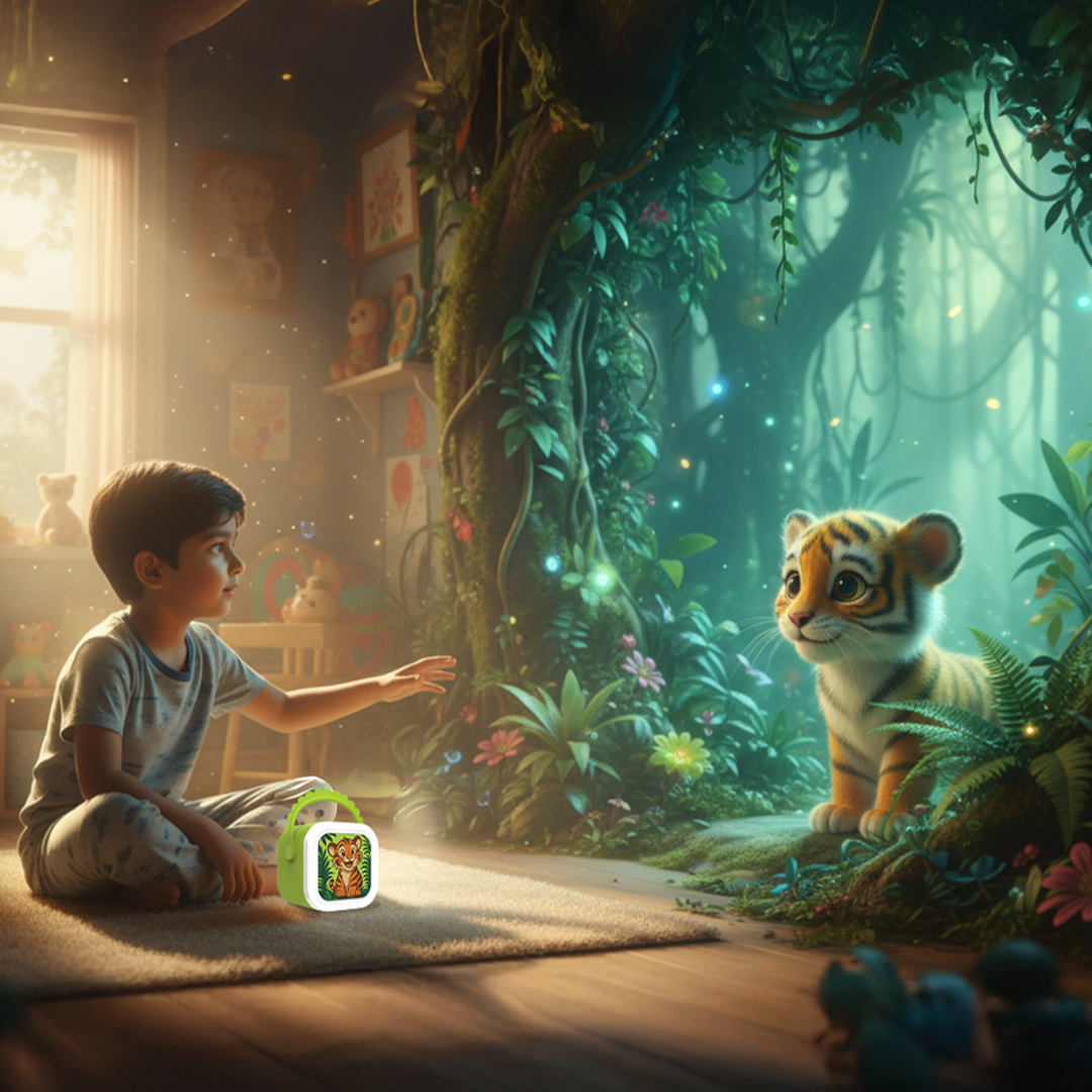 The screen-free audio storyteller that transforms curious kids into confident communicators, creative thinkers, and lifelong learners.