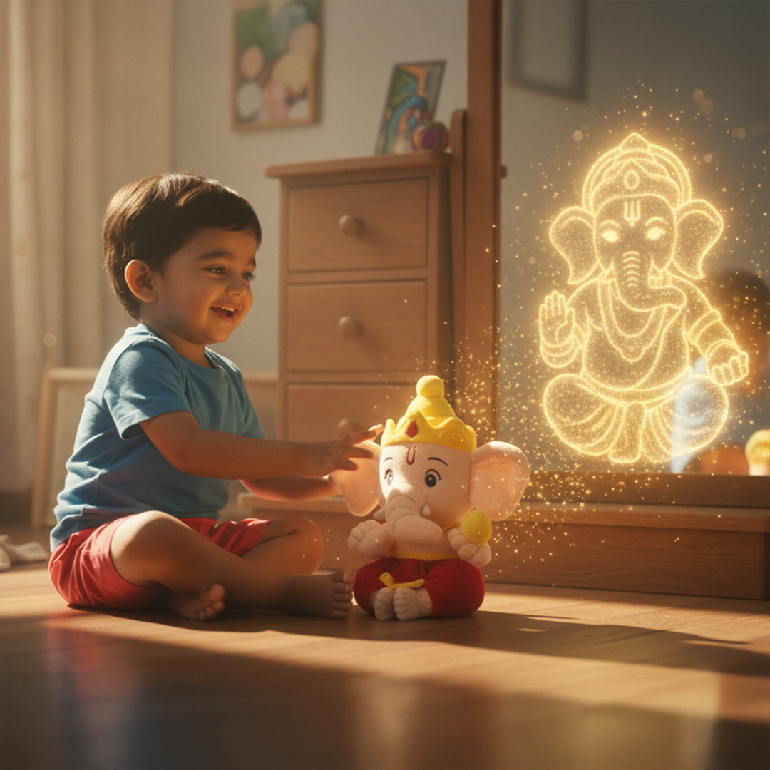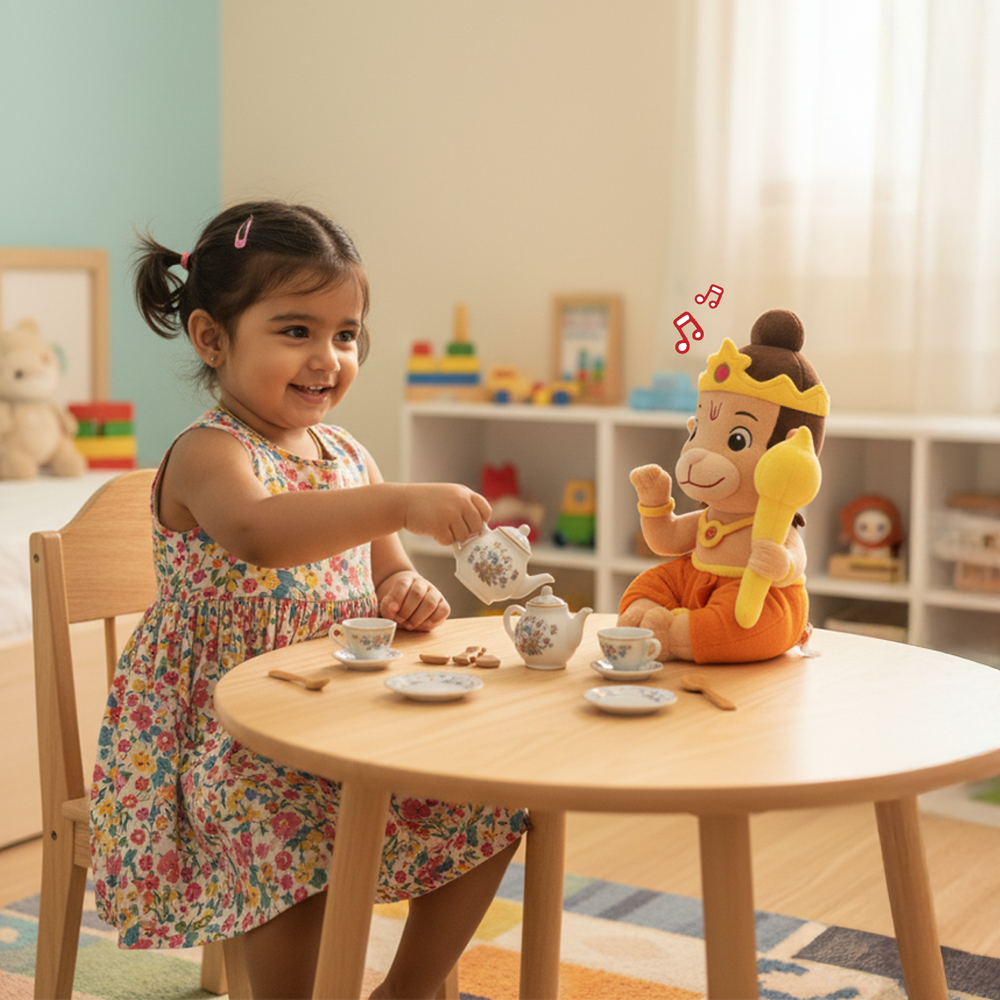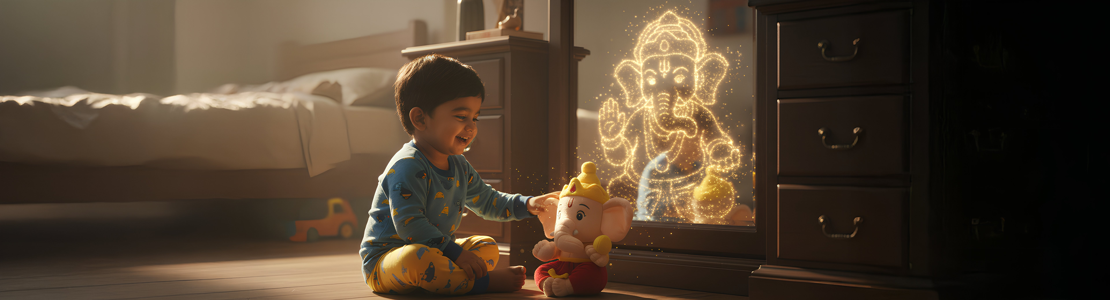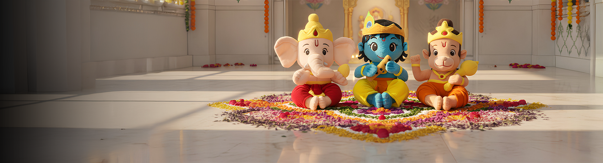 Each Divine Plush Toy comes ready to delight little ears with preloaded mantras, aartis, chaupais, and bhajans. From Hanuman to Krishna to Ganesha, every track is thoughtfully chosen to bring calm, comfort, and a gentle introduction to Indian traditions. To explore the complete set of audio for each character, click below: