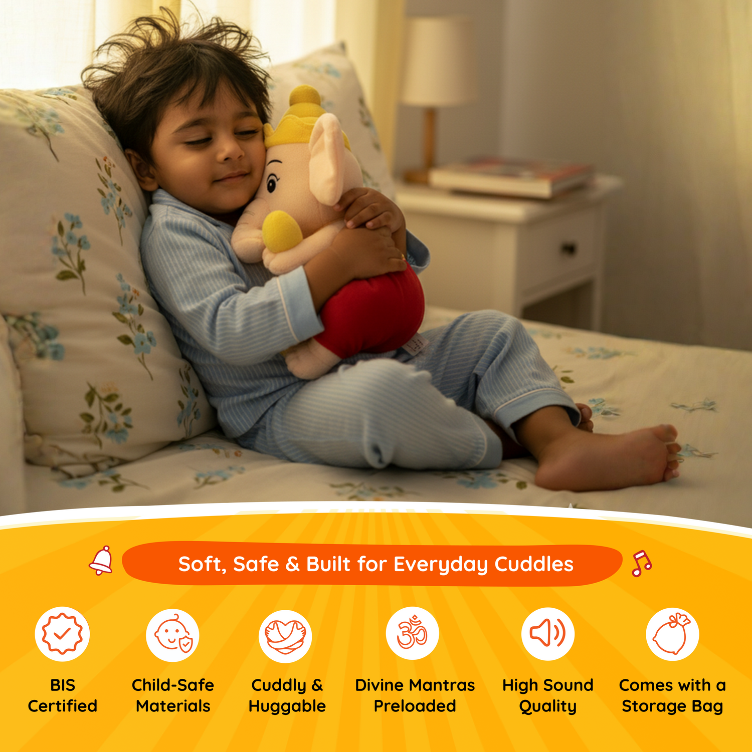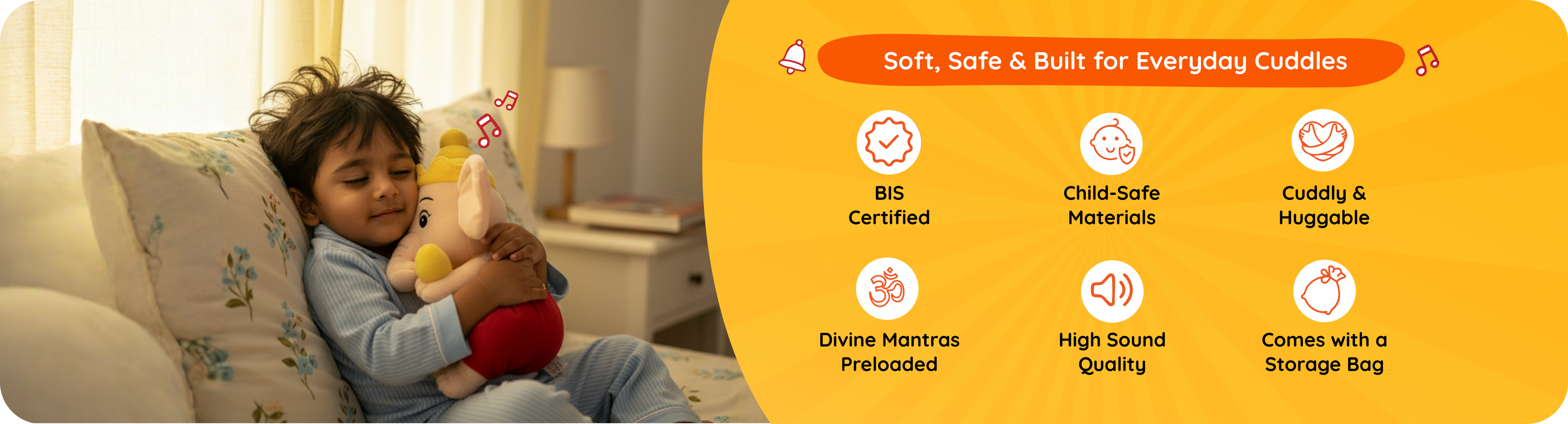 The Divine Plush Toys come with carefully selected preloaded mantras and aartis that are ready to play, so no additional downloads or apps are needed. This keeps the sounds safe, soothing, and consistent, letting your little one enjoy a gentle, screen-free experience anytime.