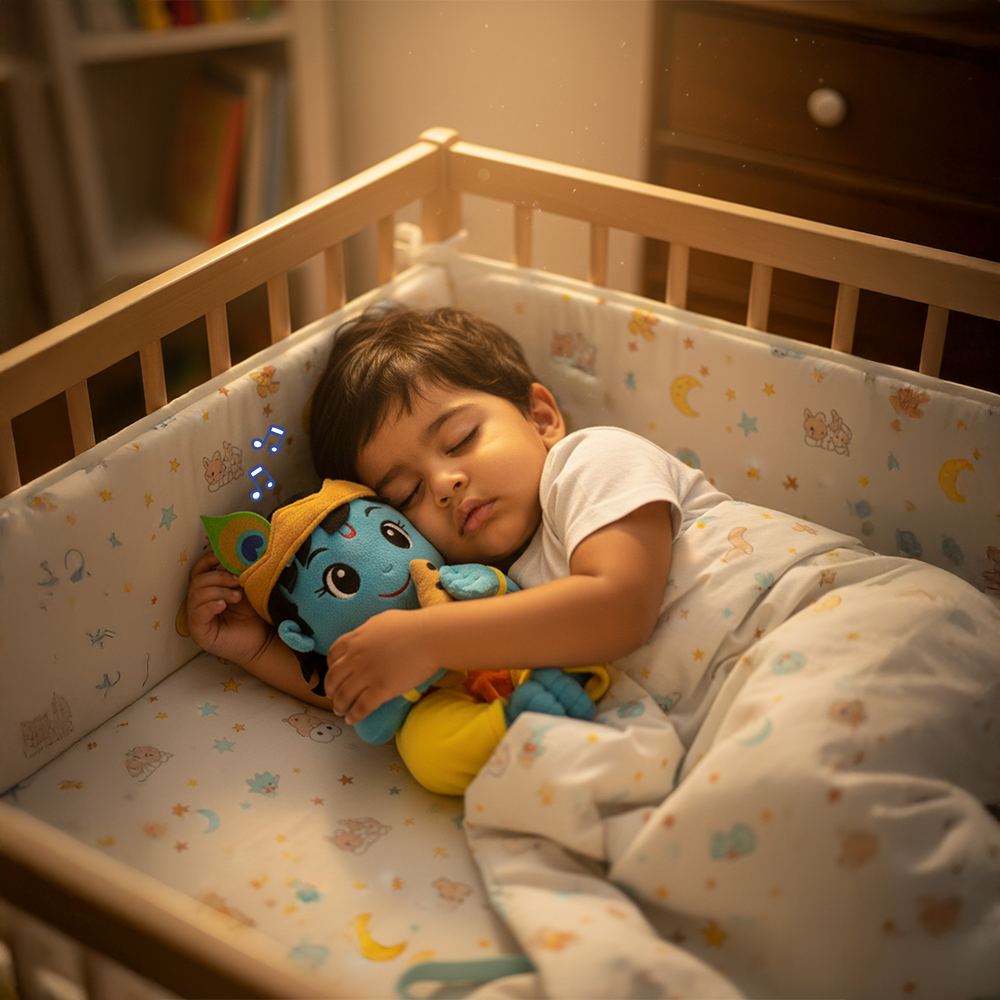 Absolutely! The Divine Plush Toys are designed with child-safe sound levels to protect little ears while providing soothing, calming mantras and aartis. Your baby can enjoy a gentle, comforting audio experience anytime, whether for play, nap time, or quiet bonding moments.