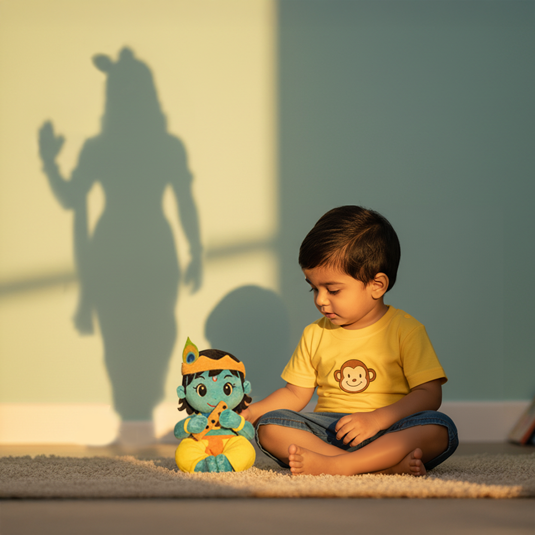 Our Divine Plush Toys are made to be a child’s first comforting companion, perfect from the very beginning, even for babies in the womb! Soft, safe, and huggable, they are ideal for newborns, infants, and toddlers, bringing calm, comfort, and a gentle introduction to soothing mantras and aartis.