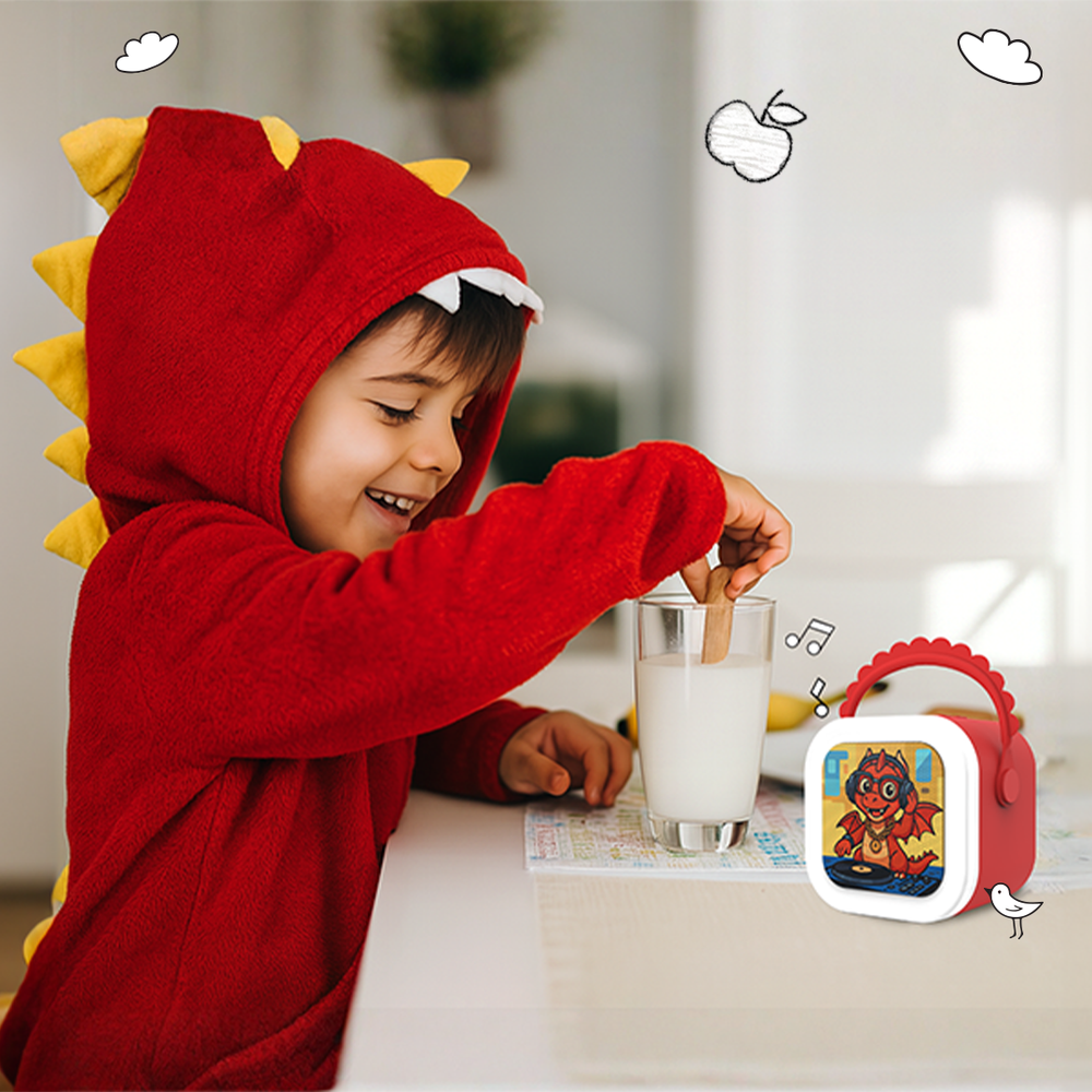 The StoryBox Mini is designed for children between 3 to 10 years of age, with content thoughtfully tailored to match different developmental stages. The Tiger and Dragon variants are perfect for younger kids (ages 3–5), featuring musical rhymes and early learning stories that build listening and language skills. The Unicorn and Dino variants are ideal for older kids (ages 6–10), offering adventure-filled stories with layered characters, exciting plots, and positive values.