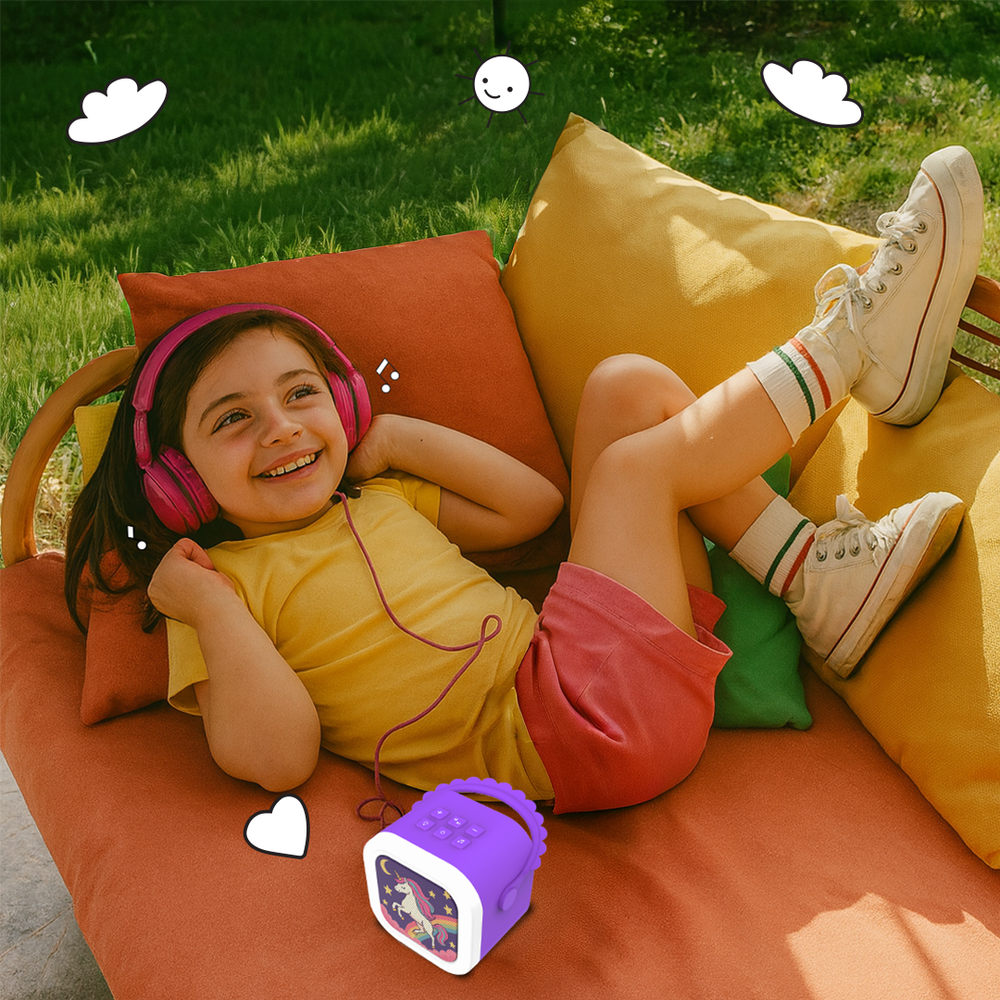 The karaoke mic connects easily to the Storybox Mini, letting kids sing along to rhymes, perform their favorite songs, or narrate their own stories. It’s perfect for pretend play, school event prep, or simply building confidence as they express themselves.