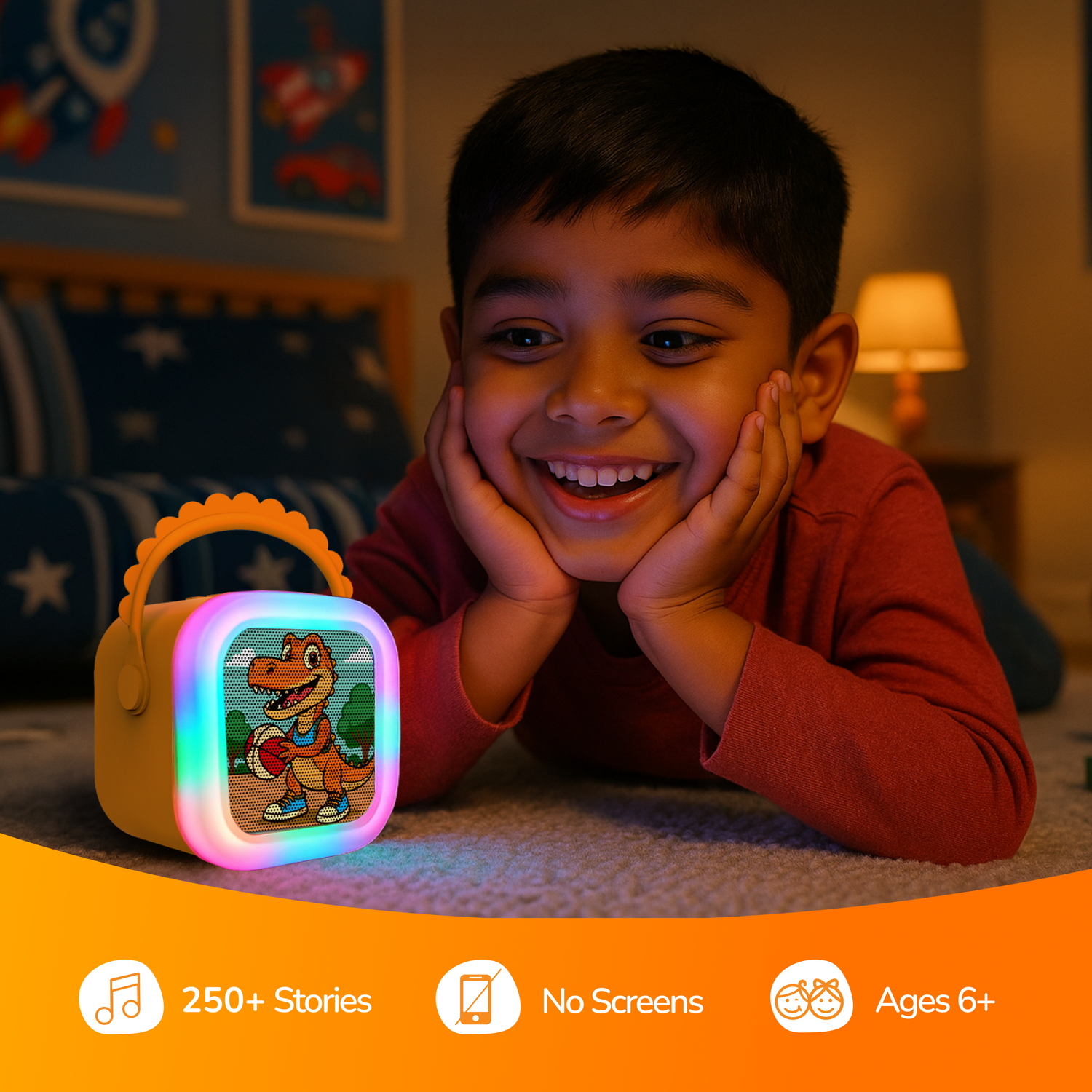 The Screen-free audio storytelling player that transforms curious kids into confident communicators, creative thinkers & lifelong learners.