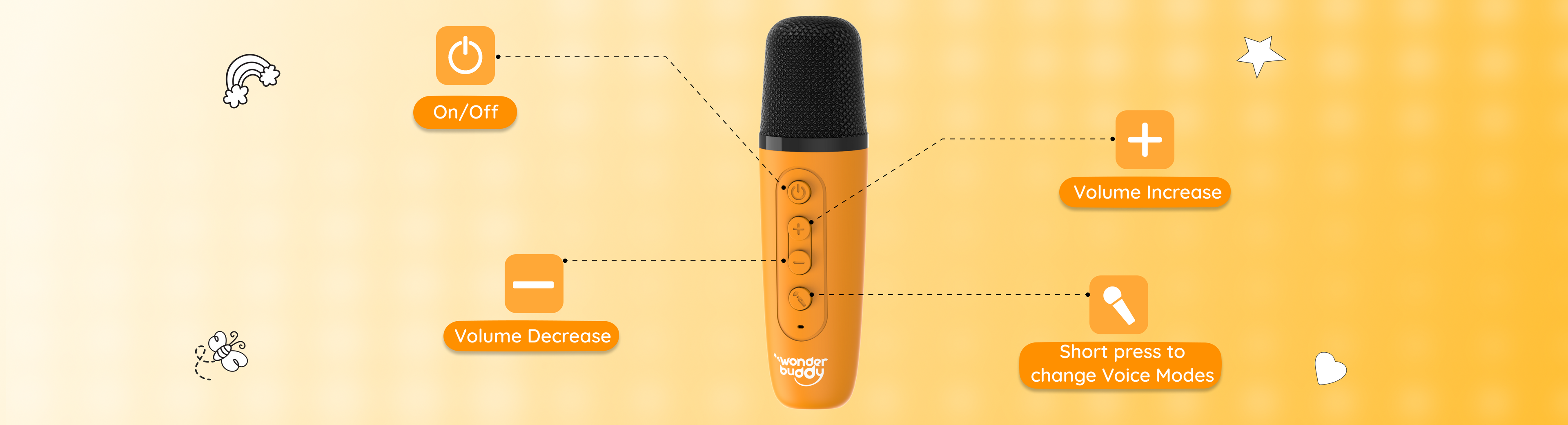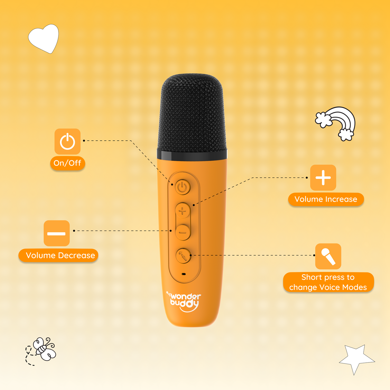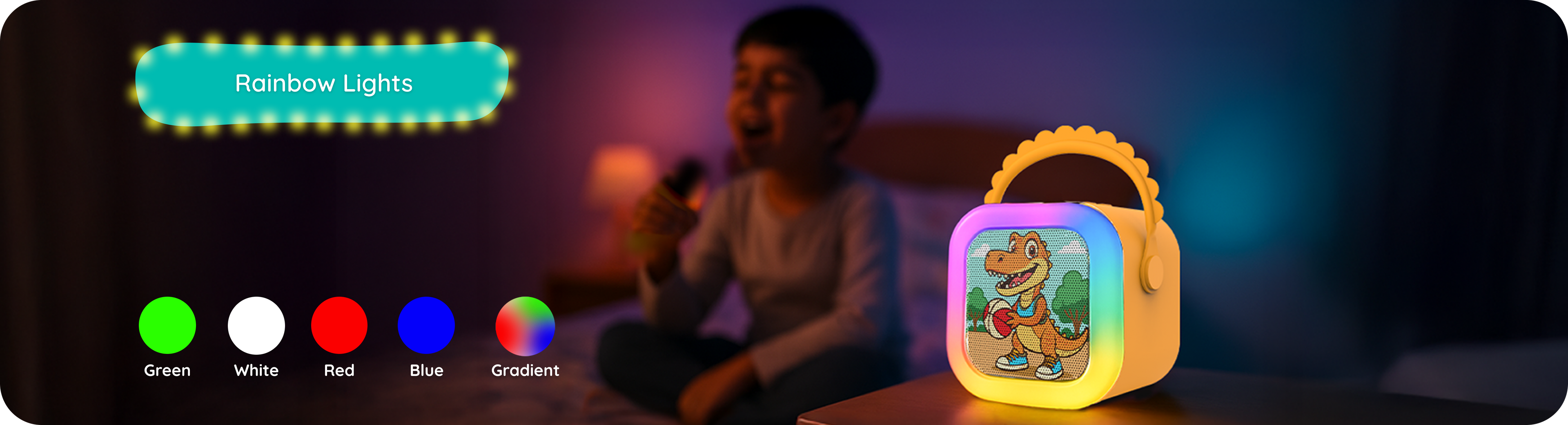 The StoryBox Mini comes with a C-type charging cable, a user manual, and a playlist booklet. The Dino, Unicorn, and Dragon variants come with a karaoke mic to make sing-along time even more fun!