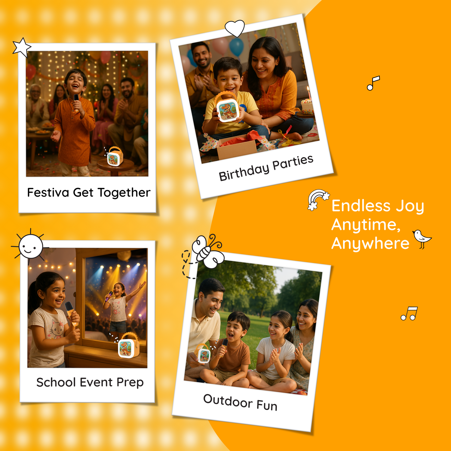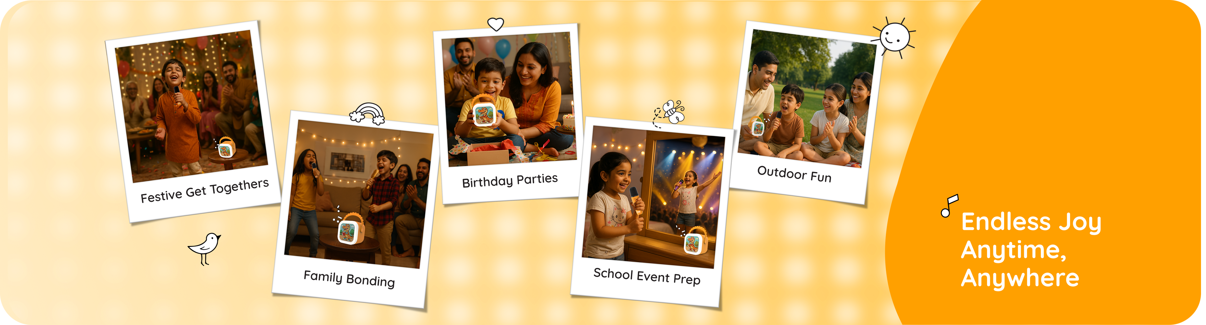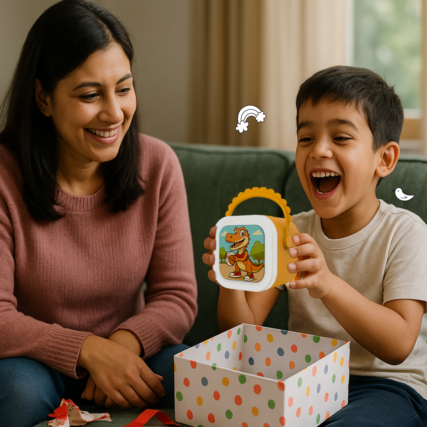 Absolutely! The Storybox Mini is designed for little hands with simple buttons, safe sound levels, durable build, and no Wi-Fi, screens, or ads. Kids can play stories, songs, or sing along completely independently, making screen-free fun both easy and safe.