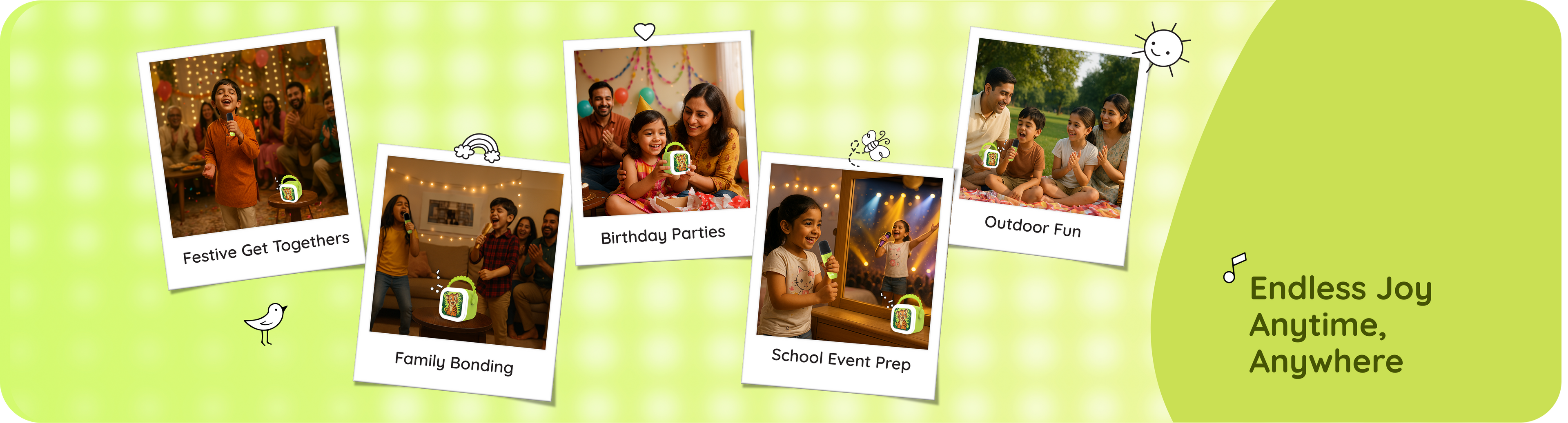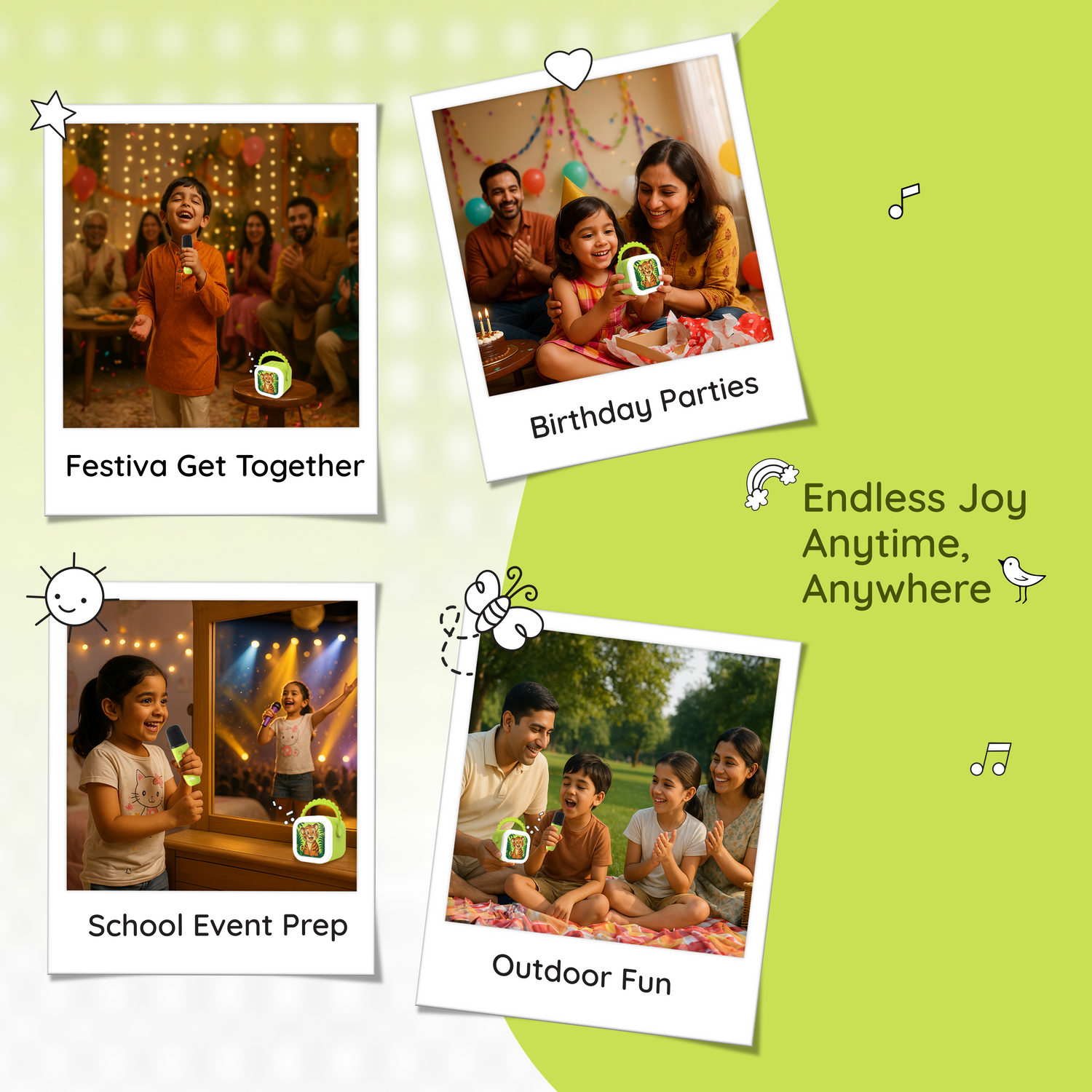 Absolutely! The Storybox Mini is designed for little hands with simple buttons, safe sound levels, durable build, and no Wi-Fi, screens, or ads. Kids can play stories, songs, or sing along completely independently, making screen-free fun both easy and safe.