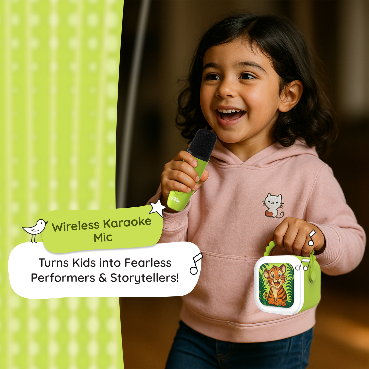 Roar into imagination with the Storybox Mini and Karaoke Mic! From ABCs & 123s to gentle affirmations & lullabies, early learning curated for growing minds