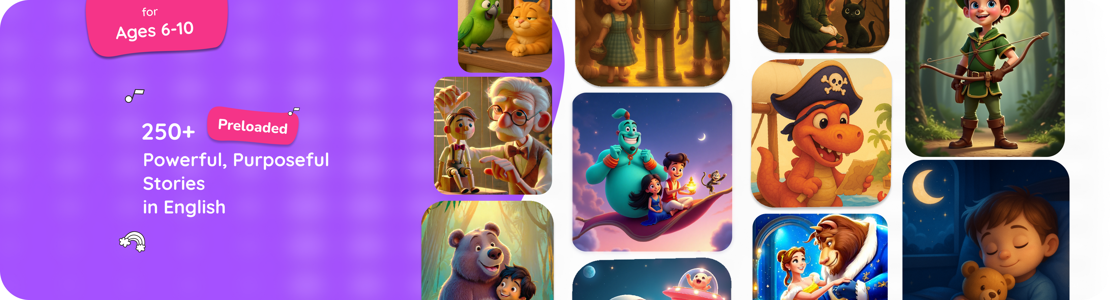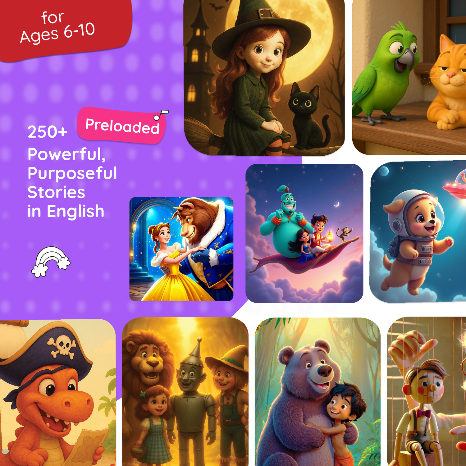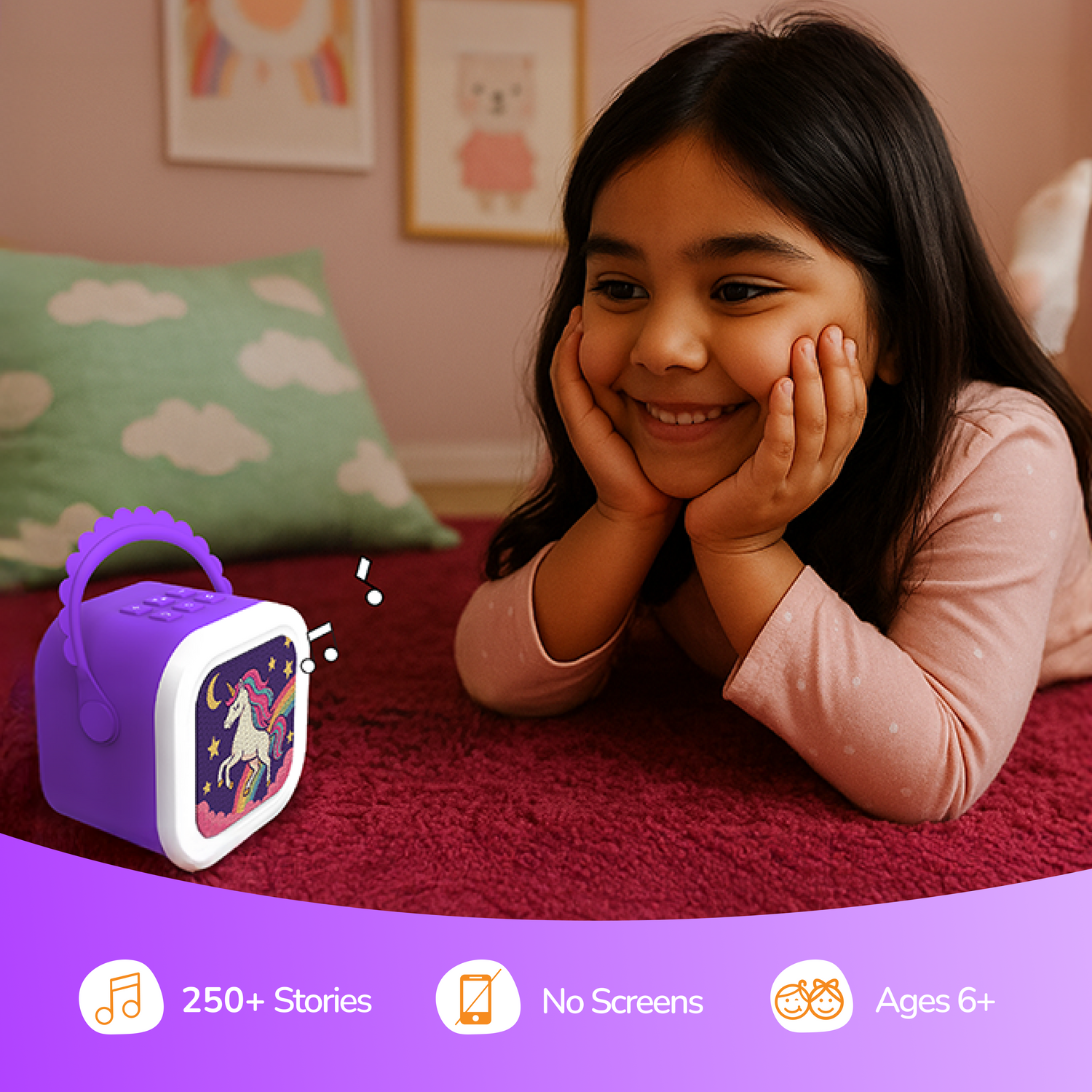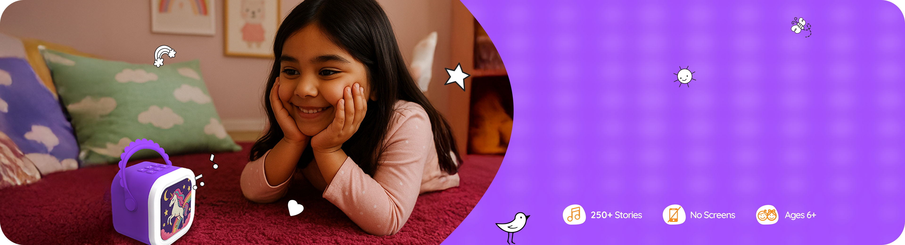 The Screen-free audio storytelling player that transforms curious kids into confident communicators, creative thinkers & lifelong learners.