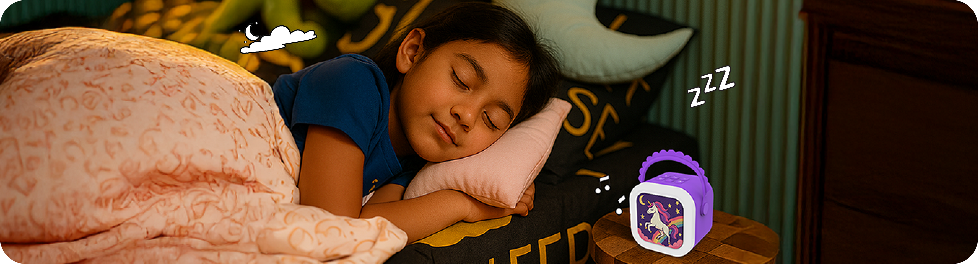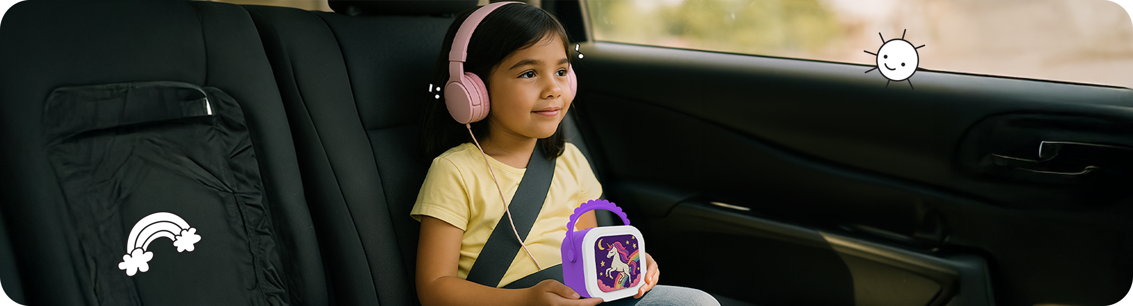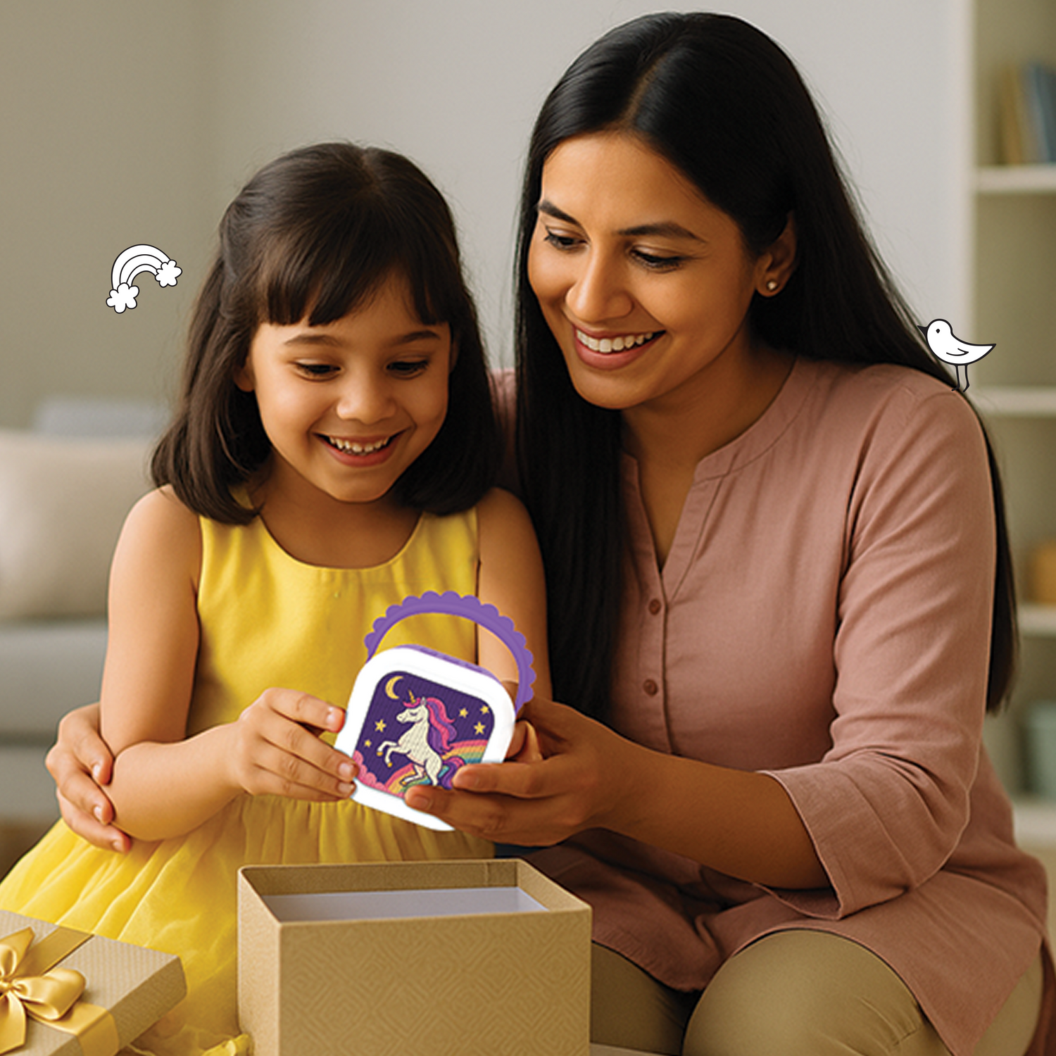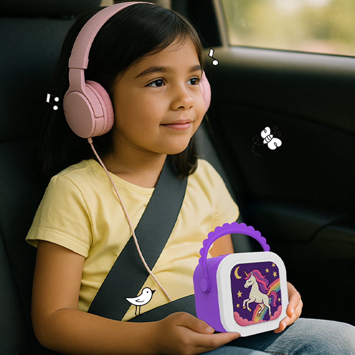 Absolutely! The Storybox Mini is designed for little hands with simple buttons, safe sound levels, durable build, and no Wi-Fi, screens, or ads. Kids can play stories, songs, or sing along completely independently, making screen-free fun both easy and safe.