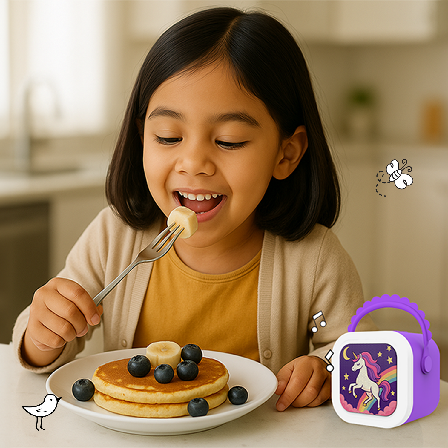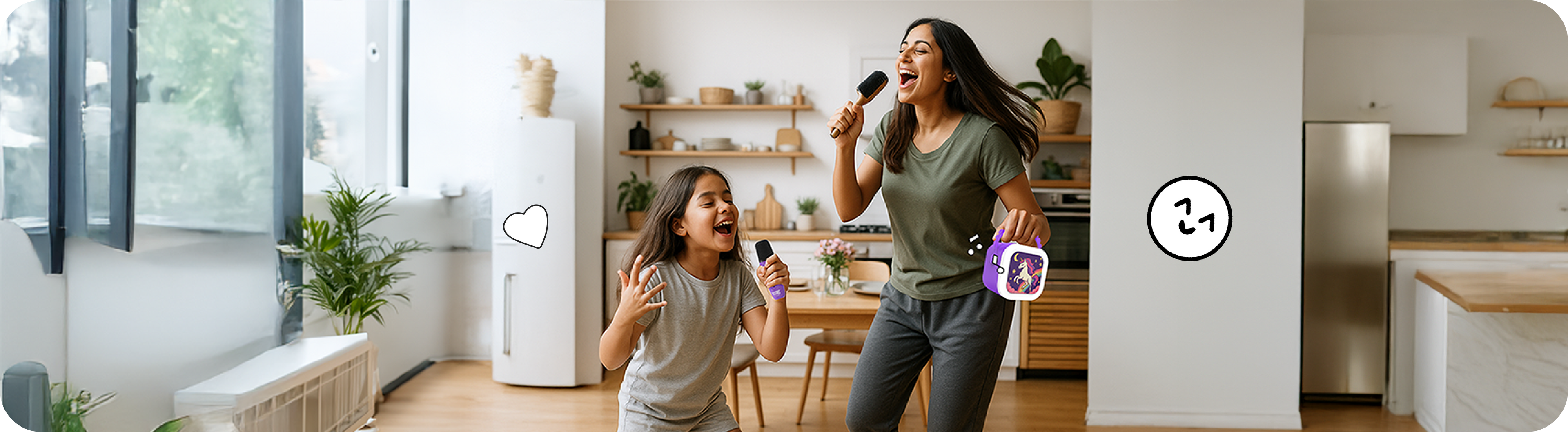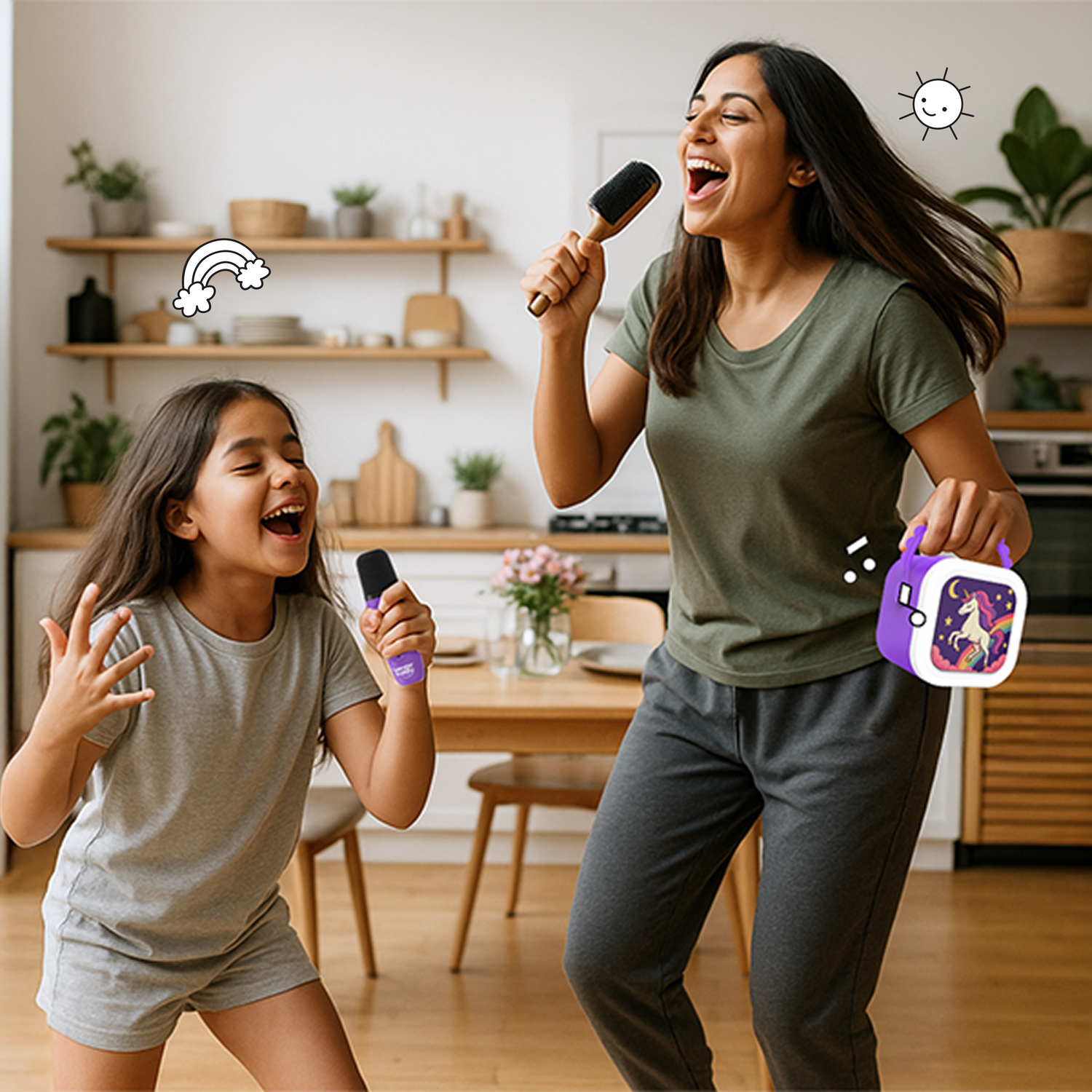 Absolutely! The Storybox Mini is designed for little hands with simple buttons, safe sound levels, durable build, and no Wi-Fi, screens, or ads. Kids can play stories, songs, or sing along completely independently, making screen-free fun both easy and safe.