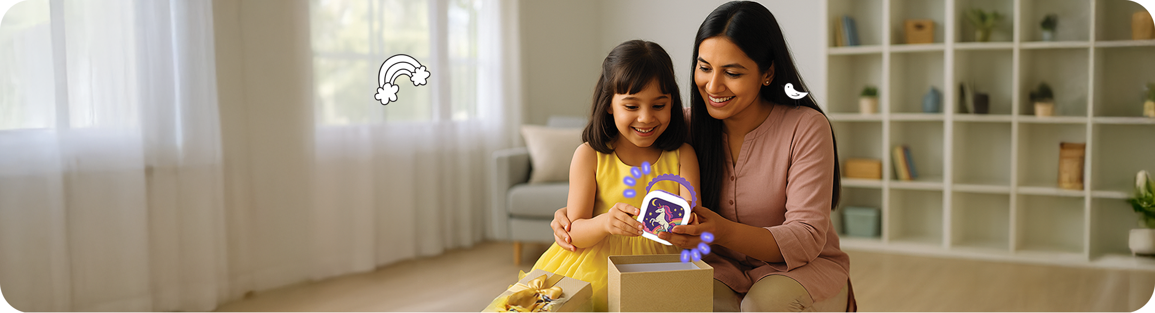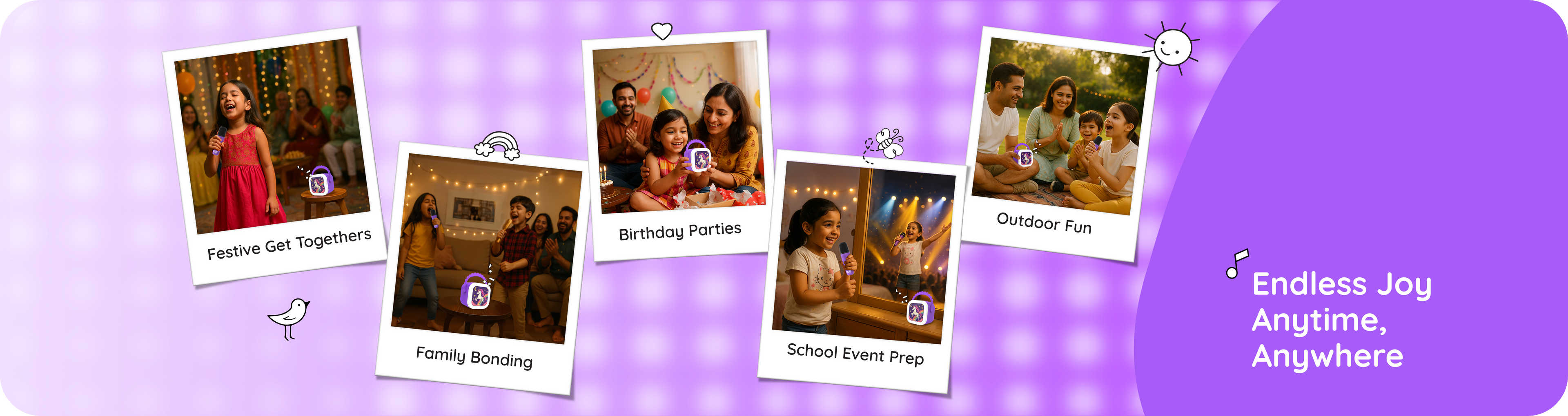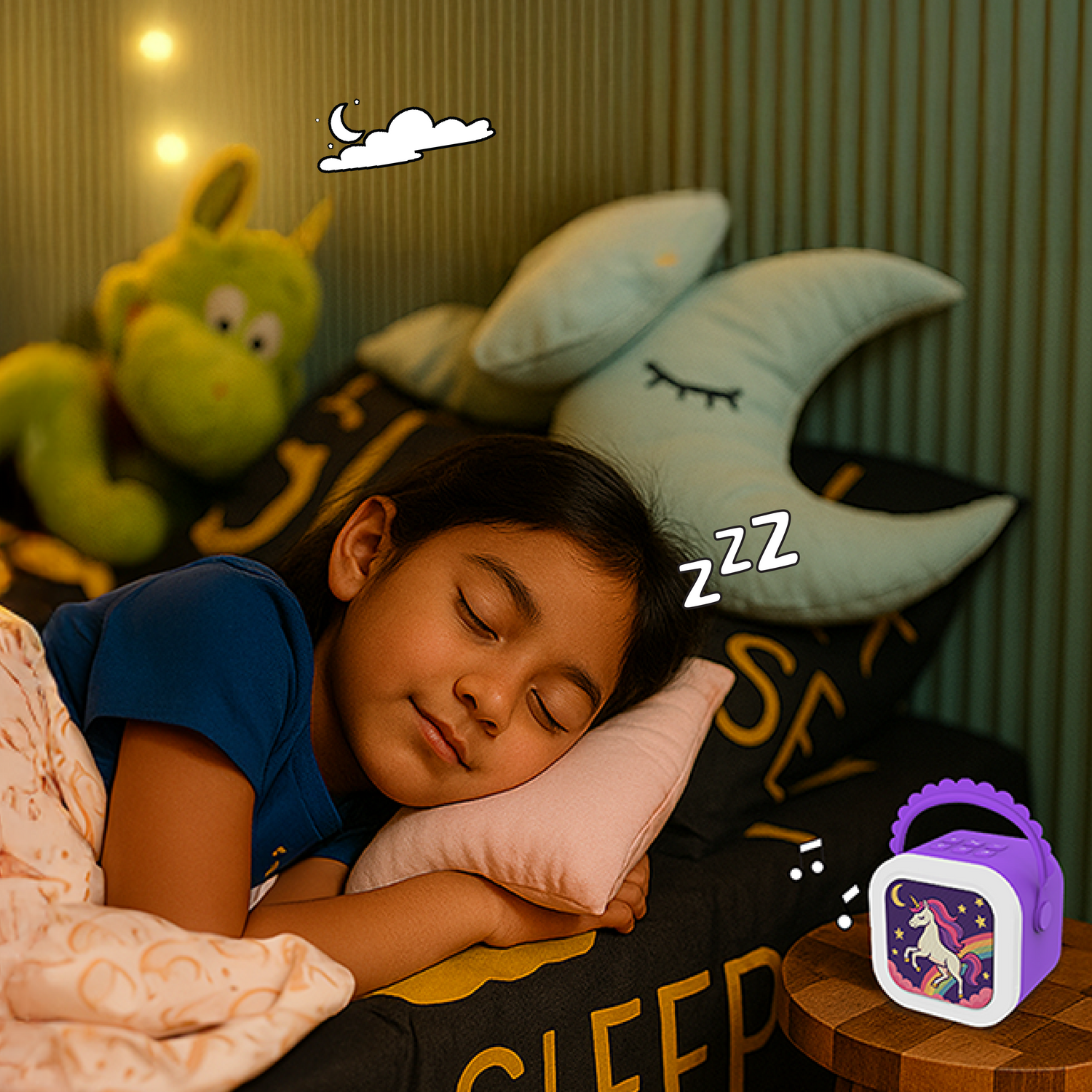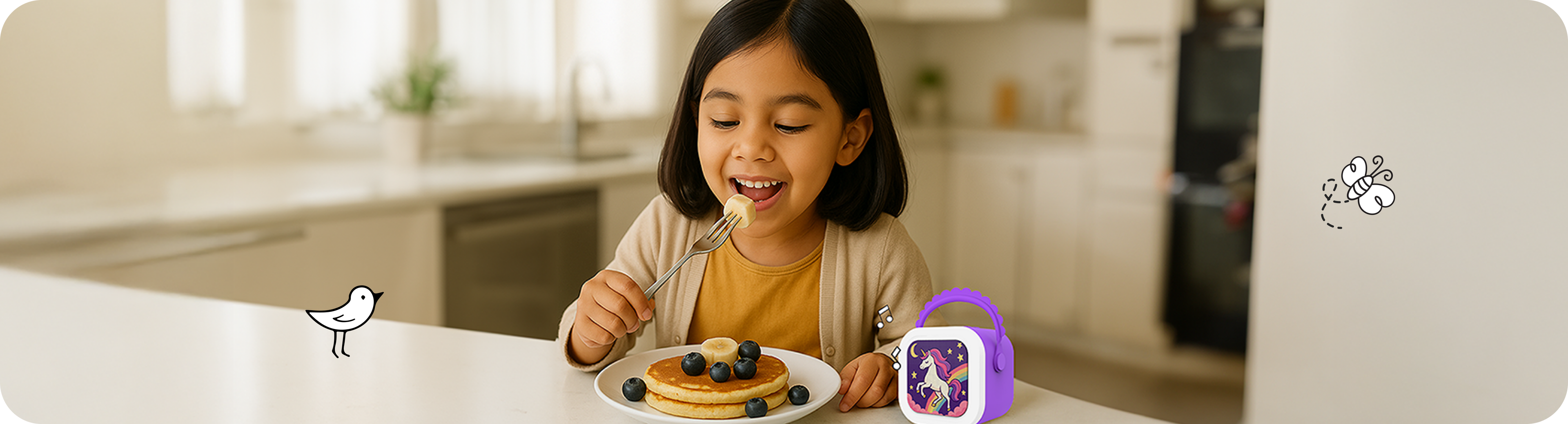 Absolutely! The Storybox Mini is designed for little hands with simple buttons, safe sound levels, durable build, and no Wi-Fi, screens, or ads. Kids can play stories, songs, or sing along completely independently, making screen-free fun both easy and safe.